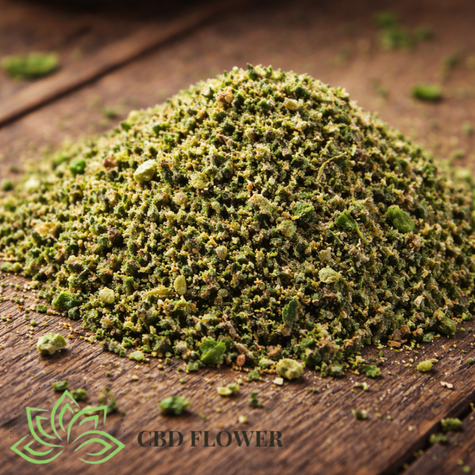 Shake collected from CBD-rich hemp flower, offering non-psychoactive cannabinoid content with natural terpene flavour.