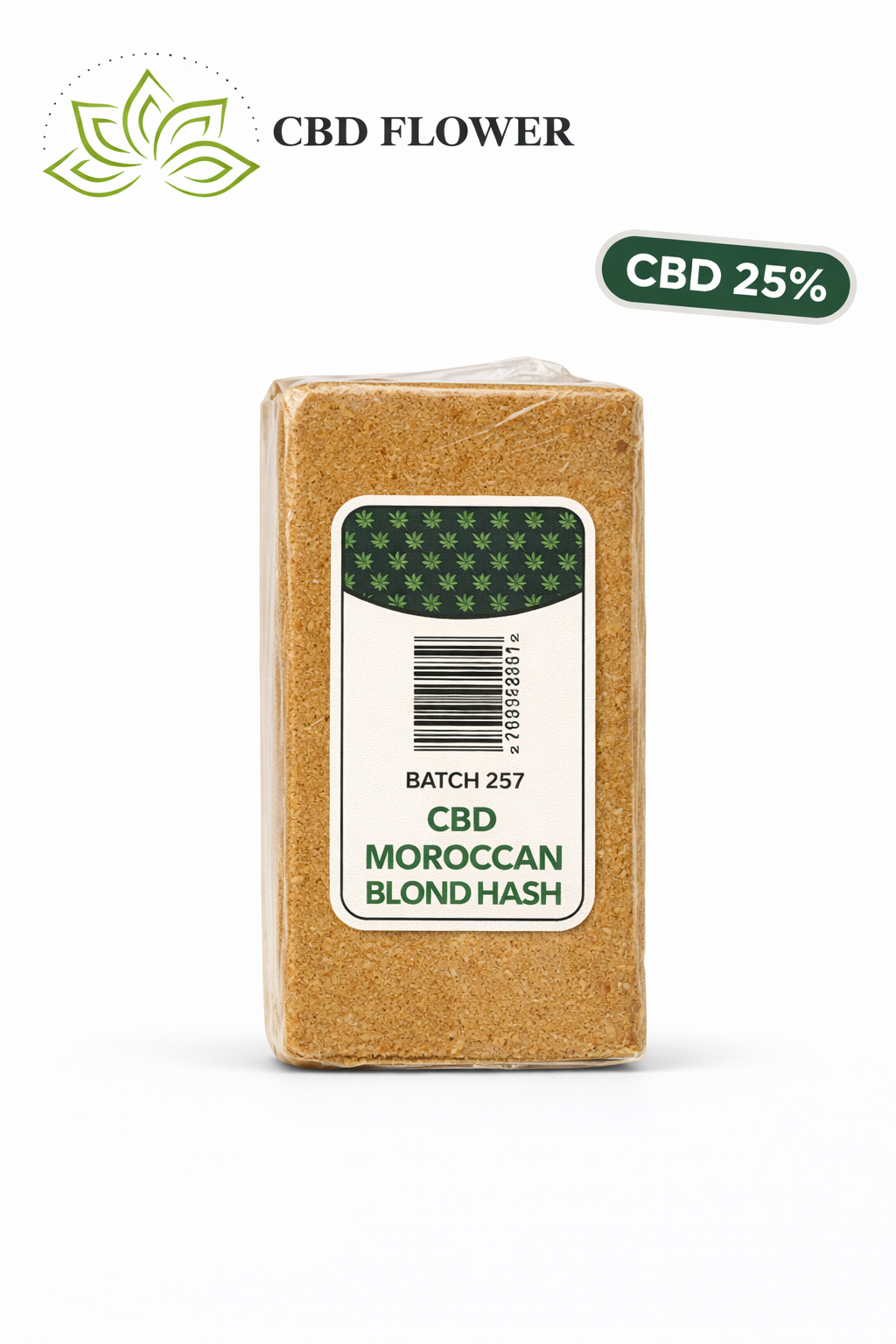 Our CBD Moroccan Blond Hash is produced from carefully selected hemp plants cultivated without GMO ingredients or pesticides. Using a 90-micron silk pollinator extraction process, we isolate ultra-fine hemp kief before blending it with premium components to achieve a balanced structure and reliable potency. The result is a medium-soft blond hash containing 25% CBD and less than 0.2% THC, fully derived from legal hemp.