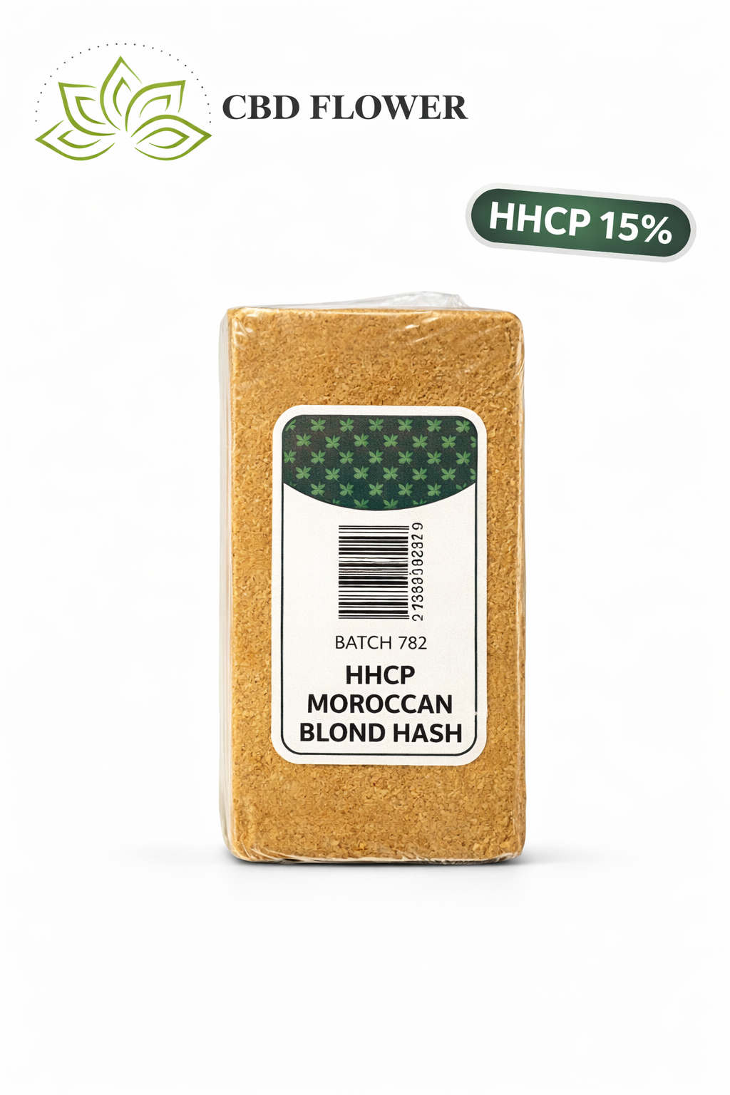 HHCP Moroccan Blond Hash is a premium artisan-crafted hemp extract inspired by traditional Moroccan hash-making techniques. Produced using refined 90-micron hemp kief, HHCP distillate, full-spectrum CBD, and live resin–derived terpenes, it delivers a smooth, balanced, and aromatic blond hash in a medium-soft consistency.