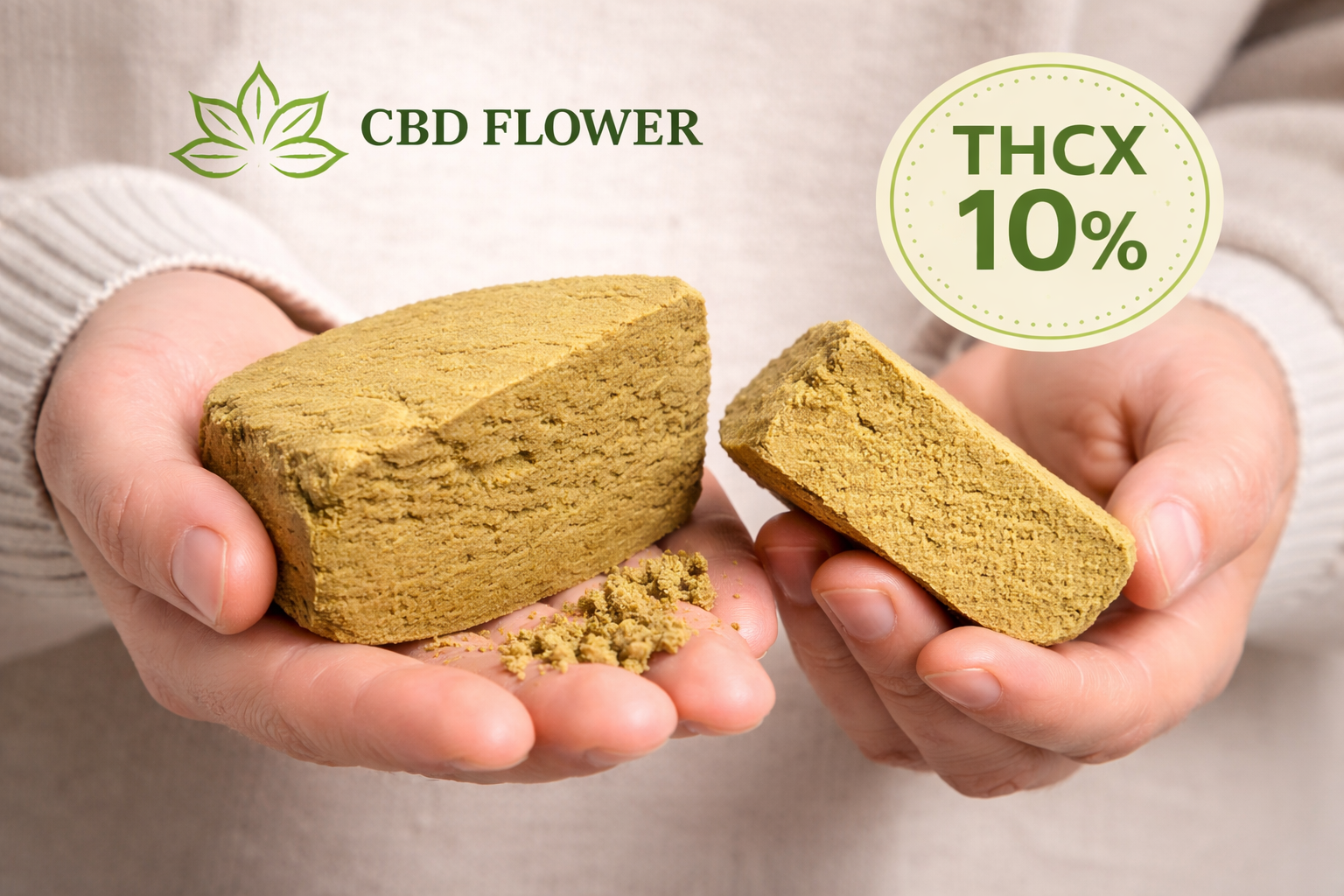 Light, smooth THCX hash made from 90-micron kief with a soft, crumbly texture and gentle aroma. Infused with THCX & CBD, 0% THC compliant.